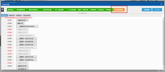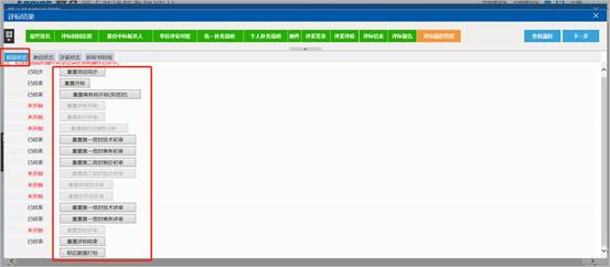 2、点击“标段状态”,可查看当前评标标段状态,如某阶段需要重新开始,则点击重置按钮进行重置。如下图: