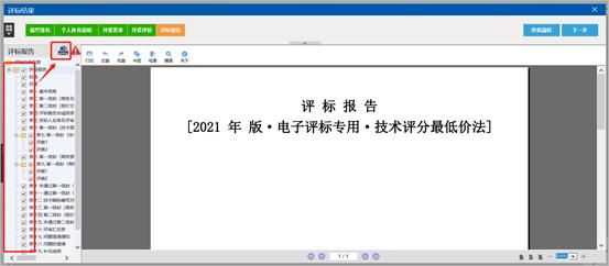 1、点击“评标报告”子菜单,进入页面,点击左侧目录栏可查看相应的评标报告文件。如下图: