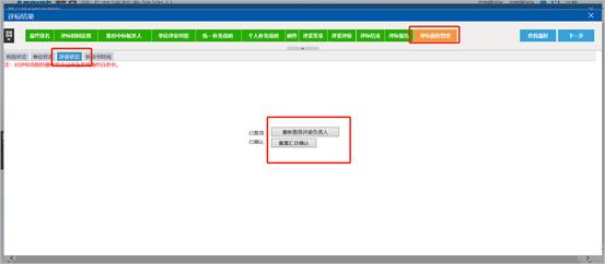 4、点击“评委状态”,在此页面可点击重新推荐评委负责人或重置汇总确认按钮,重新推荐评委负责人或重置汇总确认。如下图:
