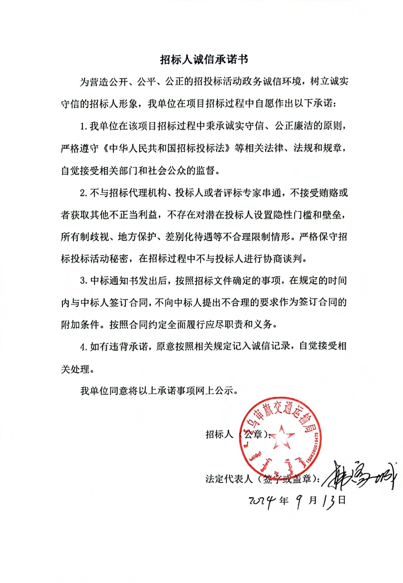 招 标 人(章): | 乌审旗交通运输局 | 招标代理机构(章): | 鄂尔多斯市巨立项目管理有限责任公司 |