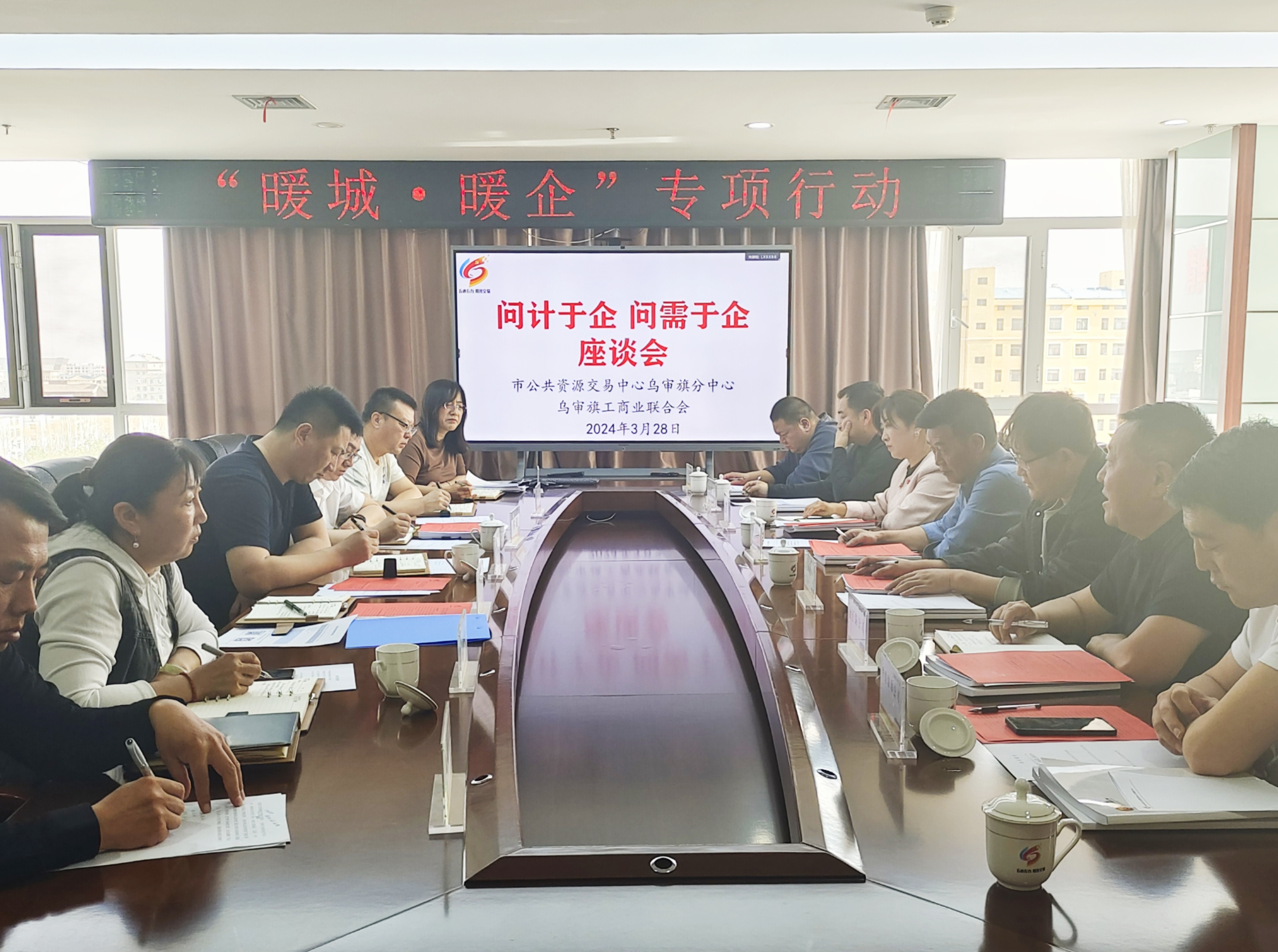 为积极推动“暖城·暖企”专项行动,畅通政企沟通渠道,大力宣传落实国家在招投标领域各项惠企助企政策,切实提高经营主体满意度。3月28日,市交易中心乌审旗分中心联合乌审旗工商联开展座谈交流活动。