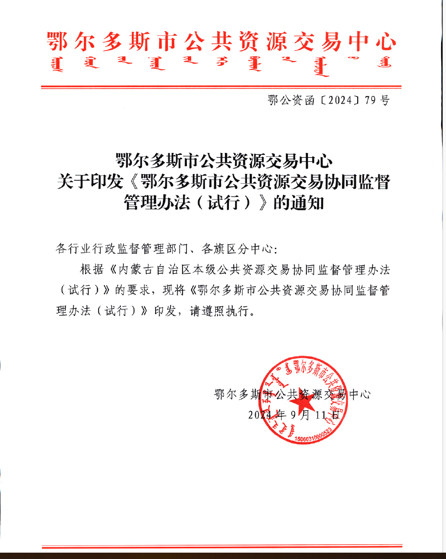 鄂尔多斯市公共资源交易中心关于印发《鄂尔多斯市公共资源交易协同监督管理办法(试行)》的通知