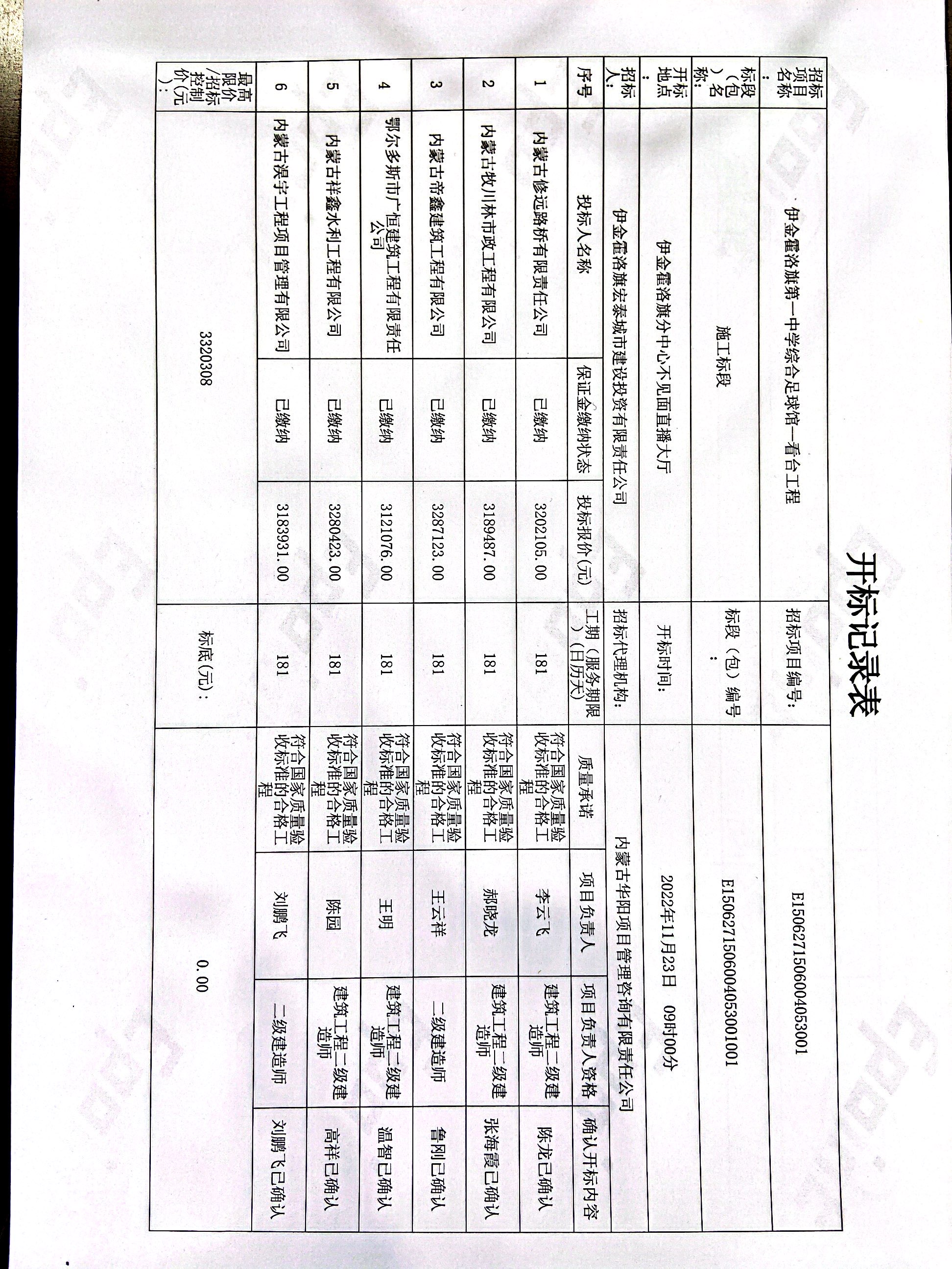 伊金霍洛旗第一中学综合足球馆--看台工程施工标段定标候选人公示
