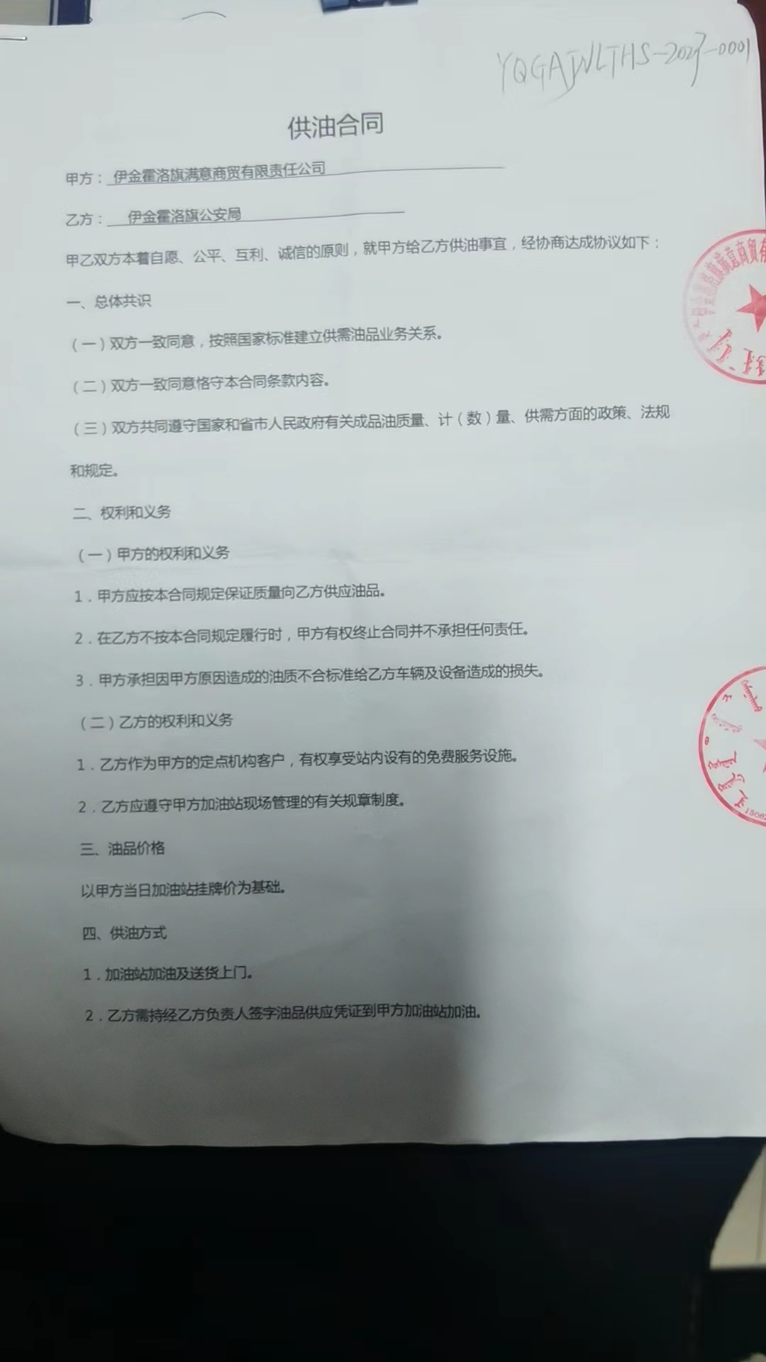 四、项目名称:伊金霍洛旗公安局关于采购纳林陶亥派出所加油服务项目