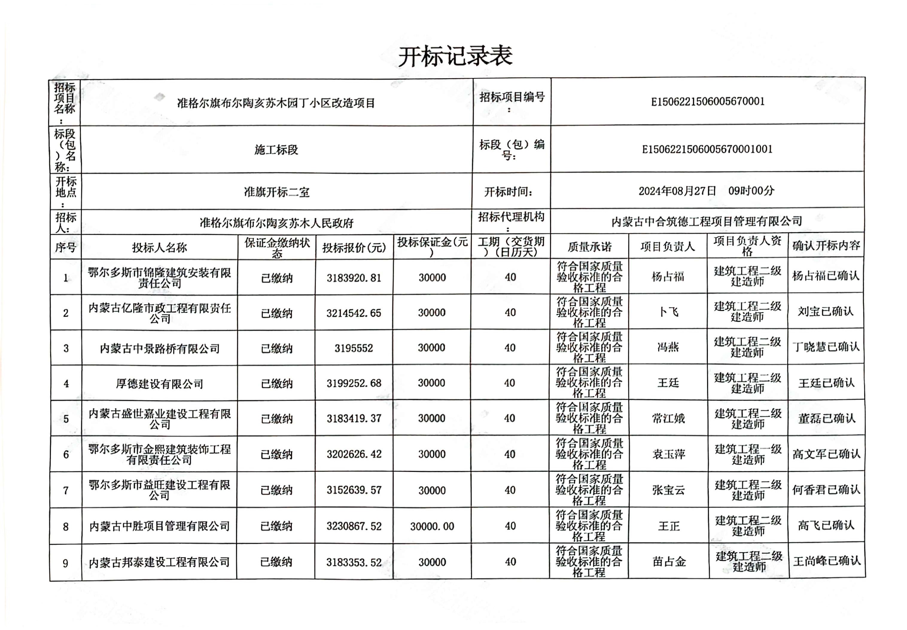 准格尔旗布尔陶亥苏木园丁小区改造项目施工标段中标候选人公示 |