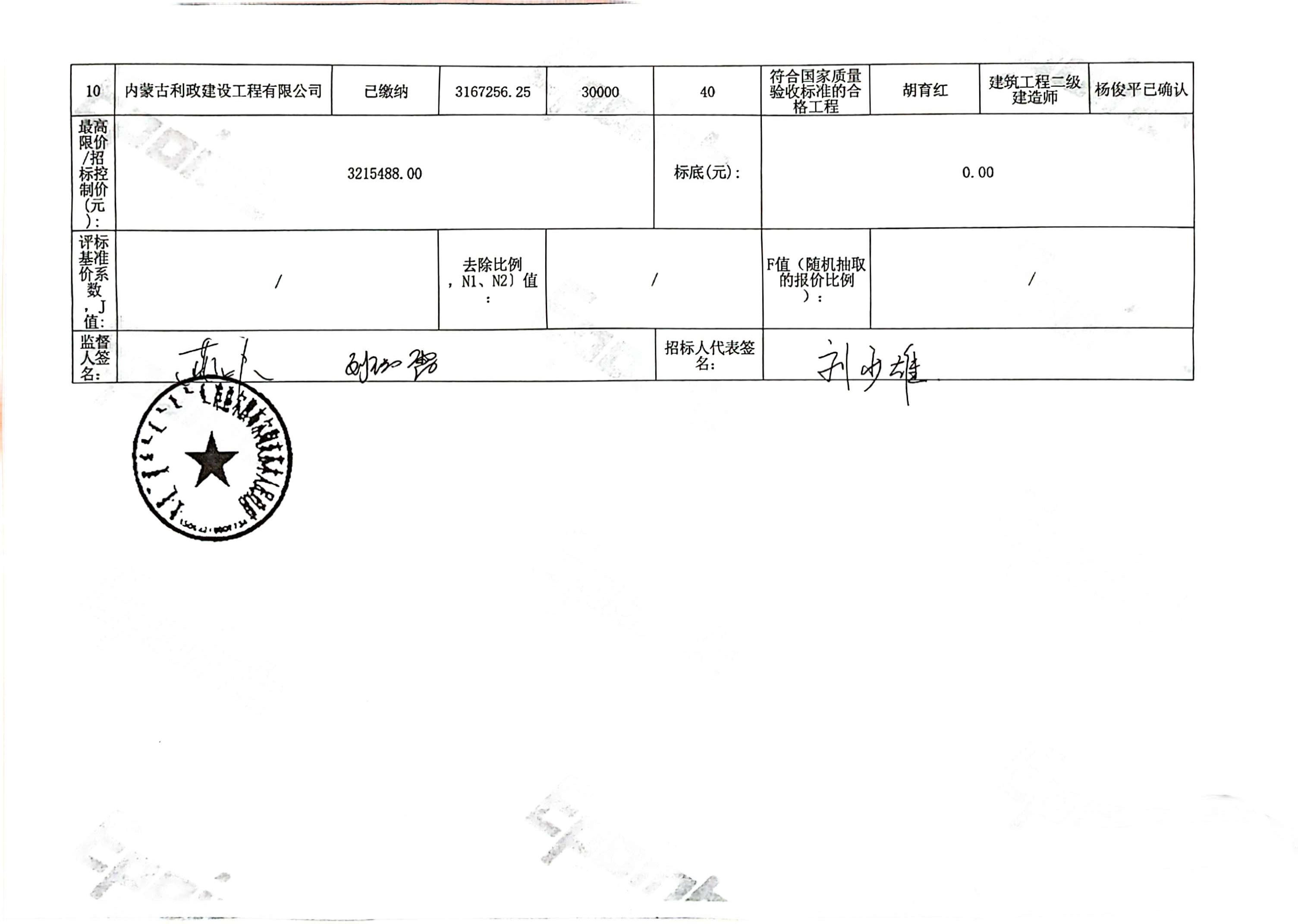 1 | 内蒙古中胜项目管理有限公司 | 投标人报价超过投标限价 | 不符合招标文件投标人需知前附表3.2.3凡报价超过投标限价将作否决其投标处理 |