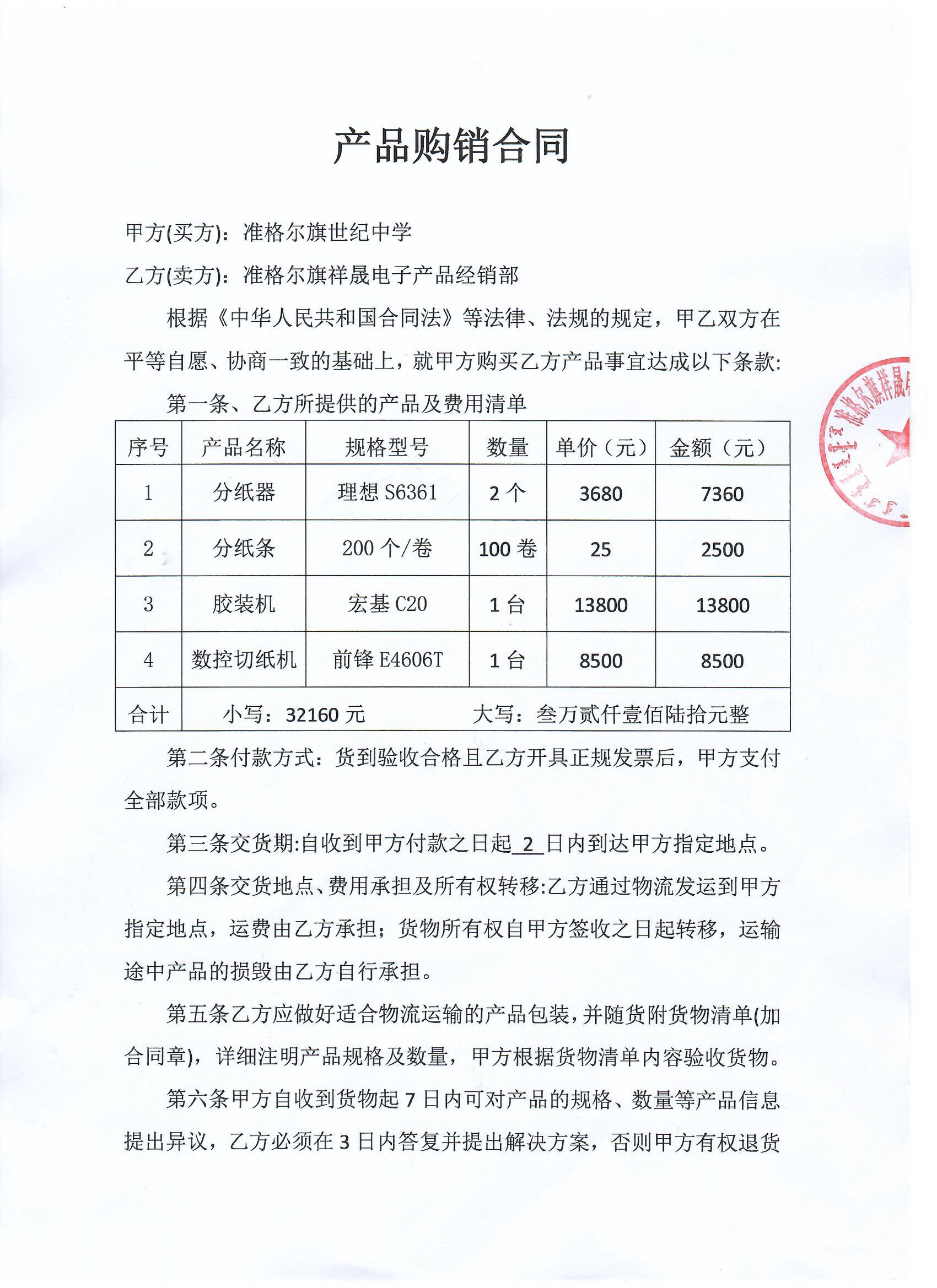 二、合同名称:准格尔旗世纪中学文印室设备采购