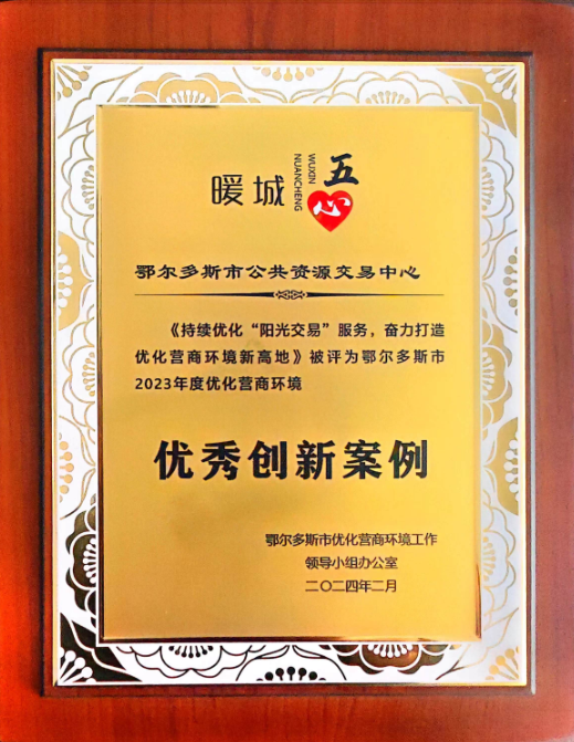 鄂尔多斯市公共资源交易中心招标投标创新案例获评“鄂尔多斯市2023年优化营商环境优秀创新案例”